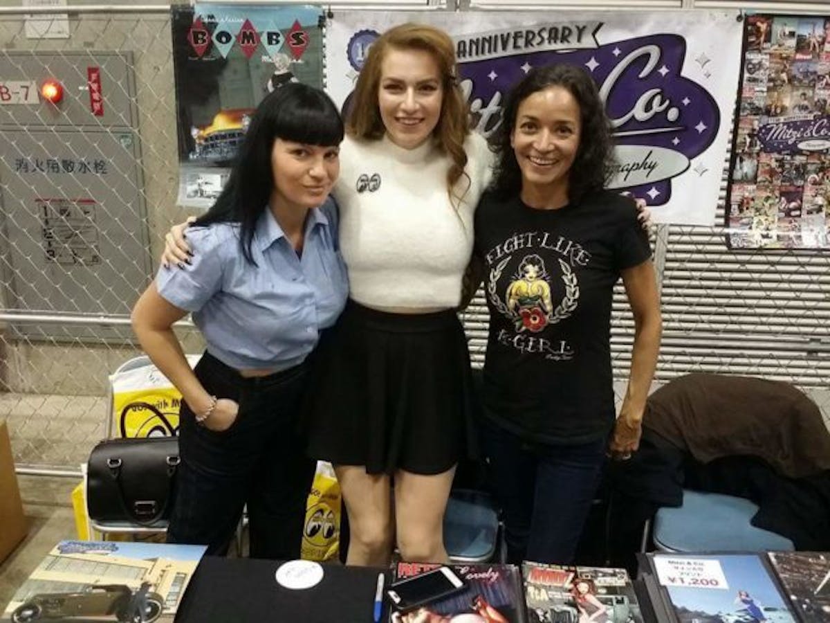 Nowadays, shooting at car shows and automotive events is a major part of her schedule, with between 15 and 20 shows on her annual circuit. In addition to attending shows, she also does commercial and private pinup shoots, runs her own studio in San Dimas, California, and even hosts a monthly “Pinup Beauty Academy” at her place of business for anyone interested in learning about pinup fashion, hair styles, and makeup.