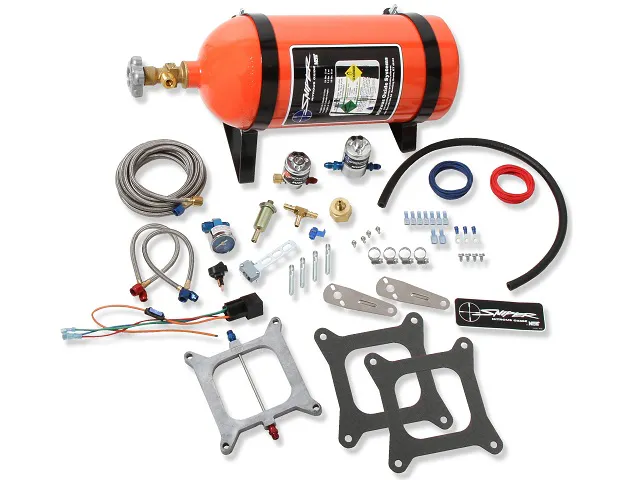 Single-stage Sniper 250 wet nitrous kits come complete with everything you need to easily boost horsepower. They include 10-pound Sniper orange nitrous bottles, 14-foot -4AN feed lines, stainless steel nitrous plates, all-new large-body Sniper solenoids, jetting for an additional 150, 175, 200, and 250 horsepower, and all the hardware for a quick, hassle-free installation.