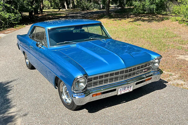 The factory dash panel cover was retained, but redone. The nine-gauge cluster was fabricated from aluminum and was precision cut.