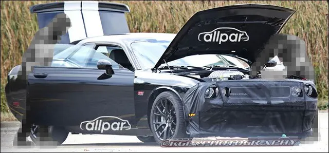 In the pantheon of new-age pony cars, the Dodge Challenger has always been the broad shouldered fella of the bunch. In fact, at over TWO TONS, it’s more quarter horse than pony and for all intents and purposes, a two-door 300/Charger. Unfortunately, with it’s arch rivals both sporting superchargers, the Chally is now the big guy that needs to go to training camp. Chrysler was well aware of this and sent their BBPC (Big,Beautiful Pony Car) off to aforementioned fitness farm and in model year 2014, the Challenger will join the forced induction club with a 6.2 liter, supercharged Hemi V-8, code named “Hellcat.” Chrysler fanboy site Allpar, brings us the scoop.