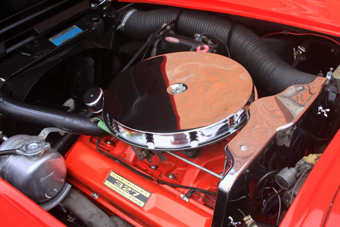 The Corvette is still powered by the very same 300 horsepower 327 small block that it left the factory with in 1962, and the same goes for the 4-speed transmission and 3.08 geared Positraction rear end. As a Two-Top car, the Corvette also has a black soft top in addition to the red hard top it was wearing the day of our photo shoot. In 2007 the car had a complete frame-on restoration performed and was thoroughly gone-through. The car was still in good enough shape that a full rotisserie resto wasn’t even necessary.