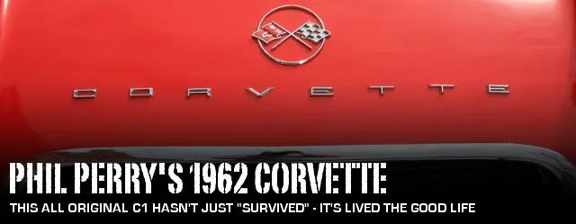 That’s exactly the case with Phil Perry’s Two-Top 1962 Corvette. This Roman Red C1 wasn’t tucked away safe from mischievous hands and the dangers of nature somewhere in a barn, only to be discovered 40 years later under 3 inches of chicken poo. No; it didn’t make it to 2012 with its original engine, transmission, and rear end still intact by hiding out. It made it here because its owners were wise enough to know exactly what they had, and were smart enough to take good care of it.