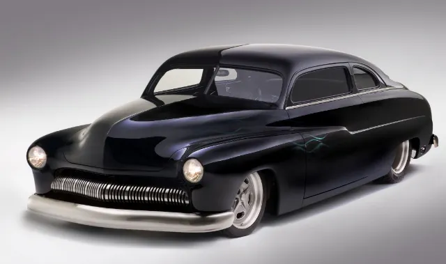 The 1950 Mercury shown above was built by Bonowski and features a custom Mattson’s radiator. Owned by actor Matthew Fox, the Merc won the 2009 Sacramento Autorama’s World’s Most Beautiful Custom award.