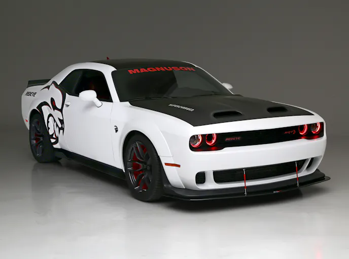 This one-of-a-kind Hellcat includes unique exterior customization courtesy of the Dream Giveaway Garage, including a blacked-out hood, roof and decklid; custom body graphics and badging; illuminated Redeye and SRT Hellcat emblems, and more! Inside the “Extreme Redeye” theme continues with Hellcat-embroidered Laguna leather seats finished in black/demonic red, a Hurst Pistol Grip automatic shifter, steering-wheel-mounted paddle shifters, premium Laguna door trim panel, custom accessories from American Car Craft, and we saved best for last — Don Garlits’ bold autograph on the dash.