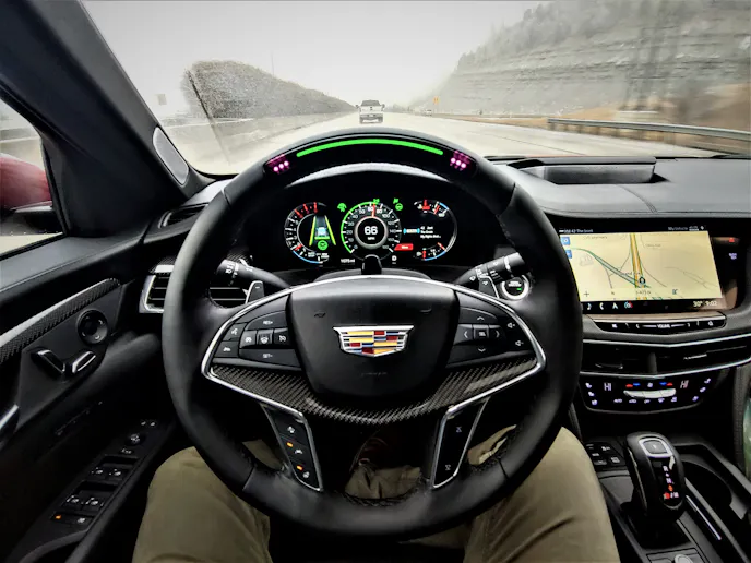 I was on the Cadillac Super Cruise launch event years ago when it first made its debut, and while the CT6 drove itself almost 90% of the way from Cleveland to Chicago, and then onward to Memphis that week, the system wasn’t without its issues. Nevertheless, after revisiting this tech, I can attest that Cadillac has ironed out many of the bugs I once detected. System re-engagement after a lane change is easier, self-centering calibrations feel more fluid, and the system doesn’t disengage as quickly when a solid white line cannot be detected on one side due to erosion or whatnot. The only issue I encountered was when sudden lane changes due to construction forced the car too far in one direction, something a small tug of the wheel easily amended.