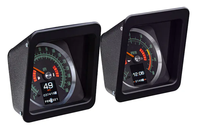 For those of you who want new school technology, but don’t want to lose that old school look, Dakota Digital has just the thing for you! Their new Retrotech series is all about keeping things looking factory, while giving the user modern capabilities. Some people are purists and don’t go for the custom interiors that incorporate the look of modern digital gauges, and Dakota Digital gets that.