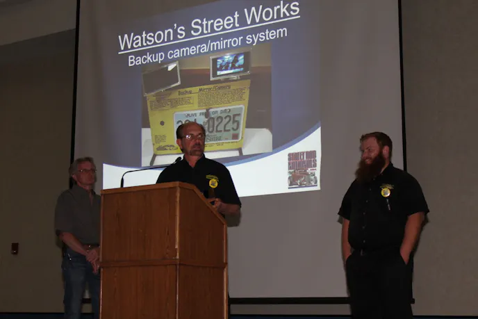 Even if you have not heard of Watson’s Streetworks, you’ve probably seen their products. Watson’s Streetworks has been producing custom parts for hot-rodders for thirty years. The company started it’s life in Connecticut, and has since moved to Nashua, New Hampshire when it was purchased by Harvey Richardson, 6 years ago. With the move came larger digs, in the form of a five-thousand square foot shop, which houses parts, projects, and employees. Since the move Watson’s has done very well, winning multiple awards for new products and safety. Below you can see Harvey Richardson accepting the NSRA, New Product of the Year, and Safety Product of the Year award for the Third time in four years.