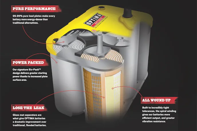 “For hot rodders, vibration resistance and the ability to be cycled deep and fast may be of negligible importance,” said Optima Jim, eCare manager of Optima Batteries. “Their cars may only see weekend use in warm weather and bumpy roads are generally not sought out. However, in many cases some hot rods have been built out to such a degree, that no aspect was left untouched. Many owners don’t want to cut corners when it comes to a battery. They look to Optima’s Spiralcell AGM design and know that it’s spill-proof design minimizes the chance of corrosive battery acid damaging meticulous paint jobs.”