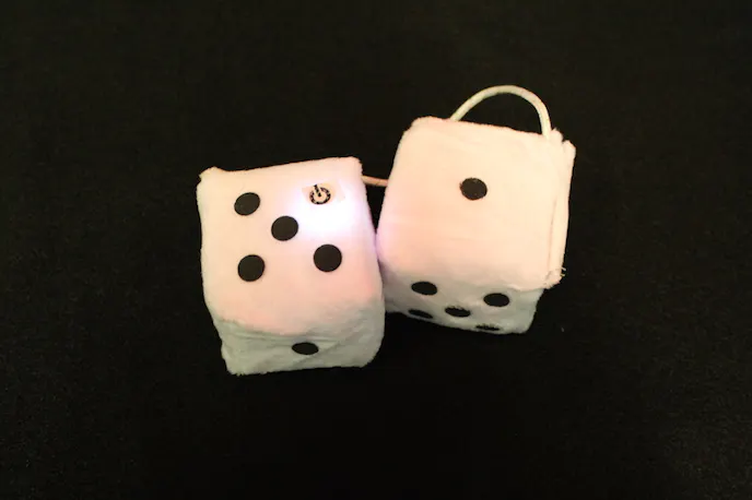 The history of fuzzy dice, like so many hot rod traditions, is traced back to American pilots in World War II. The pilots would hang dice with the one of the many combinations of seven pips showing for good luck. When the war was over and the pilots returned, the tradition continued when Mark Shepherd created the first fuzzy dice in 1952 for a friend.