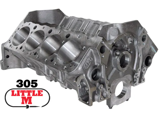 Produced in premium cast iron and created as a replacement for GM’s 305 small-block, the Little M 305 engine block has a Brinell hardness rating of 220. By using the same properties as those employed in all Dart race-series blocks, it is a direct derivative of the Little M.  The 305 possesses all its established features, but with smaller cylinder bores and full water jacket construction. Blind-tapped head bolt holes are used throughout.