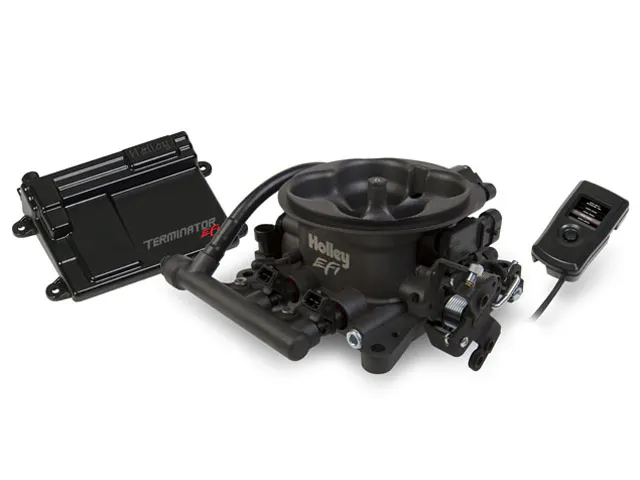 TerminatorEFI_SLTVA system so easy and powerful you’ll think it’s alive. Terminator EFI from Holley sets the new standard for easy-to-use carburetor replacement EFI! The Terminator throttle body is pre-wired with only one connection. It requires no computer experience as set up is done through the Terminator hand-held programmer. Answer a few basic question the Terminator ECU self learns to your engine. All you do is install and drive! Fuel injection from the fuel systems experts – Terminator!