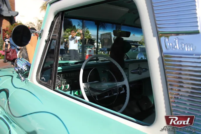 Meeting these guys at Ink-N-Iron is a testament to the nature of things–any culture will experience highs and lows, but any culture that’s rooted in passion and the preservation of tradition will survive the test of time. “I bought this truck for my son when he was in high school, it had a 6-cylinder in it and a 4-speed. He primered the bottom half and left the white top, lowered it, split the manifold so it would have some loud-ass pipes,” Ken told us in cool fashion.