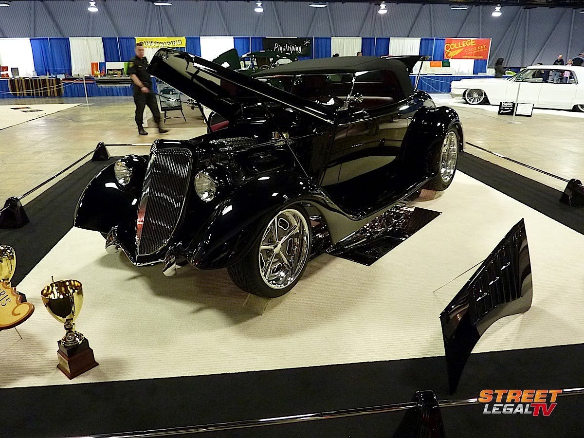 Up next is Dale Fode’s black, all-steel “1934.5″ Ford Roadster. Designed by Mark Willis and Bob Stewart over at Mark Willis Custom Painting, this pitch black ’34 was devastating in person. Dig the blown LS7, 4L60, Kugel suspension, and foot deep R-M paint. From the rake of the windshield to the smoothed and tucked rear bumper, the mods were subtle but added up to greatness. The custom wheels by Hulst were a cross between old school Halibrands and 1968 Ford T-Bird “mag” hubcaps and were the perfect finishing touch. WON BIG with Sam Barris Memorial Award, Dick Bertolucci Automotive Excellence Award, Steve’s Auto Restorations Mark of Excellence Award, 2015 Best Rod. Wow.