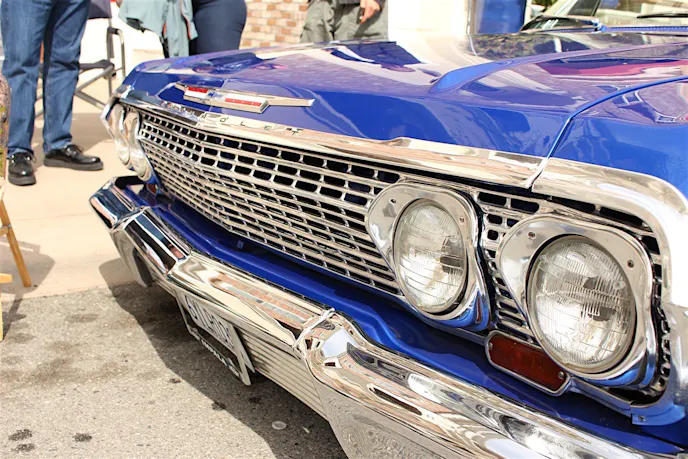 The first thing we asked about was, of course, the paint. Jerry told us that he’s had the car for six years, but only had the paint done last year. To give it the incredibly deep hue, he actually had some purple mixed in; at certain angles, it’s revealed in a beautiful gradient of the two colors. And with the original 327 small-block, Powerglide transmission, and air bag suspension, this BowTie likely cruises as good as it looks.