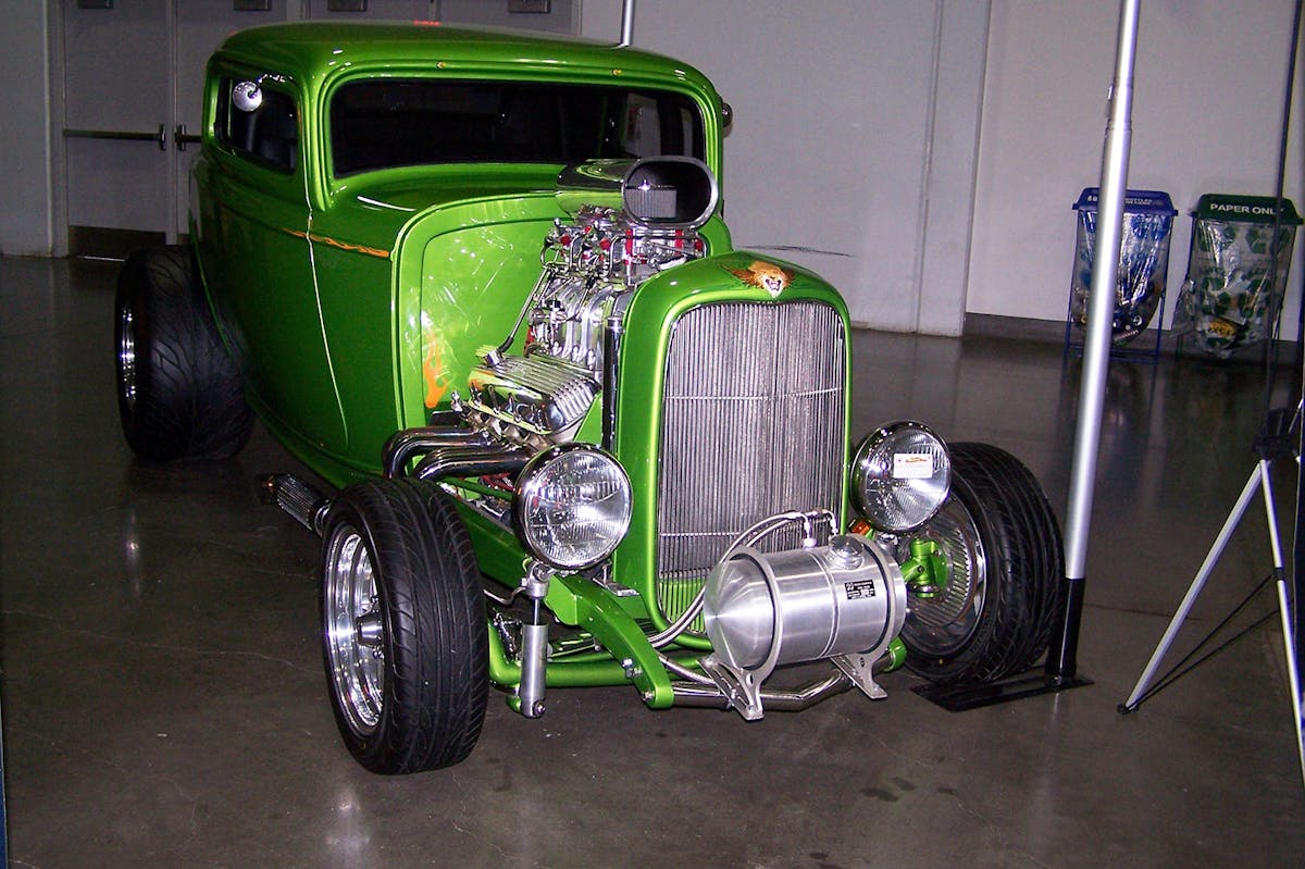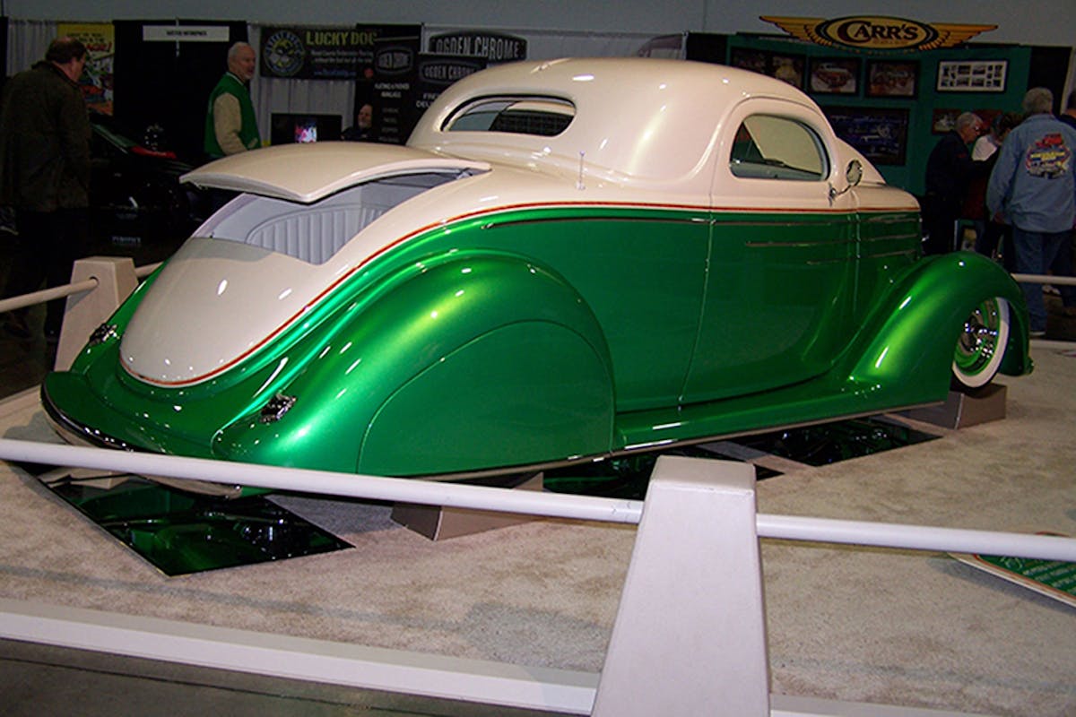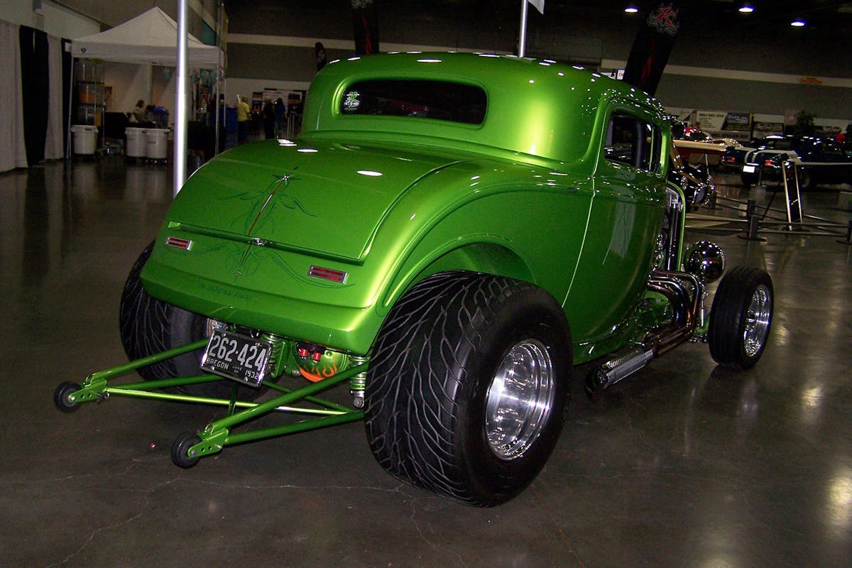 The ’32 three-window coupe from Industrial Finishes was actually a ‘virtual car’ that only existed as a Photoshop image in their ads. That is, until company founder Stuart Barr asked, ‘What if someone wants to see the car?’. Only then was it finally brought to life. The Lime Green matches their current corporate colors.