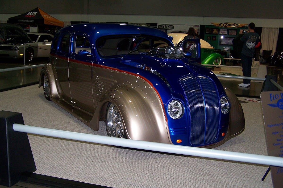 Built and owned by Butch and Cathy Steele, ‘Flo Blown’, a ’34 DeSoto Airflow, has a 331ci Hemi with 6-71 blower, hand-made chassis, and a molded but not chopped metal body, with paint by Tommy Carr.