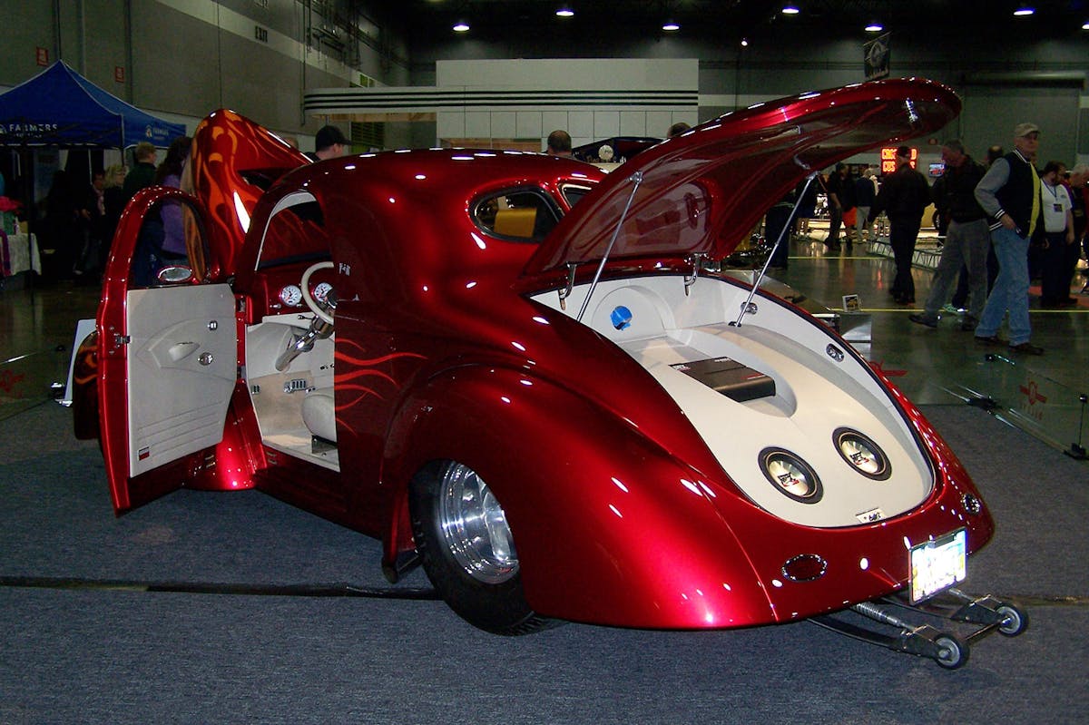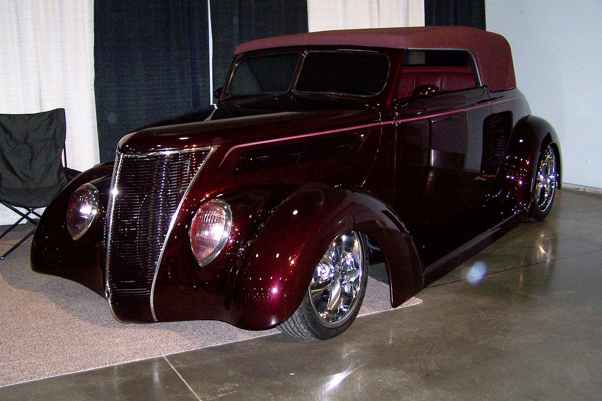 Zack Brombacher’s ’37 Ford Cabriolet features a 350ci engine with a Turbo 350 transmission, a modified ’37 Ford frame with air bagged TCI front and Jaguar XKE rear suspension, a top chop of 2-3/4 inches, and Candy Brandywine paint. Al and Carolyn Johnson also own a ’37 Ford, but theirs is a rare Lincoln Zephyr V-12, one of only 35 remaining. It was painted by Jason Chism and upholstered by Jeff Martin.