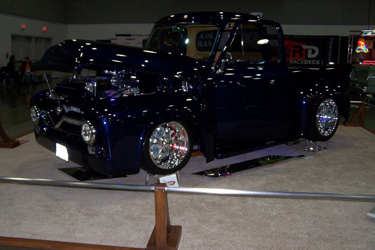 John Rydzewski built an all Ford ’55 F-100 with a 351ci W engine, C-6 tranny, 9-inch rearend with Detroit Locker, Accuair suspension, Mickey Thompson tires, and Schott wheels.