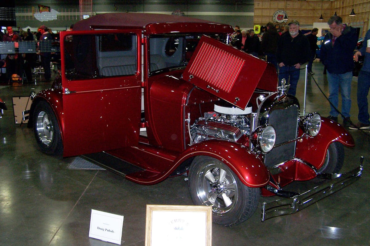 Owned for 55 years by James Gallien, this ’28 Ford Business Coupe has a 327ci Corvette engine, 700R4 automatic transmission, 9-inch rear, four-wheel disc brakes, vintage American wheels, and an aluminum roof.