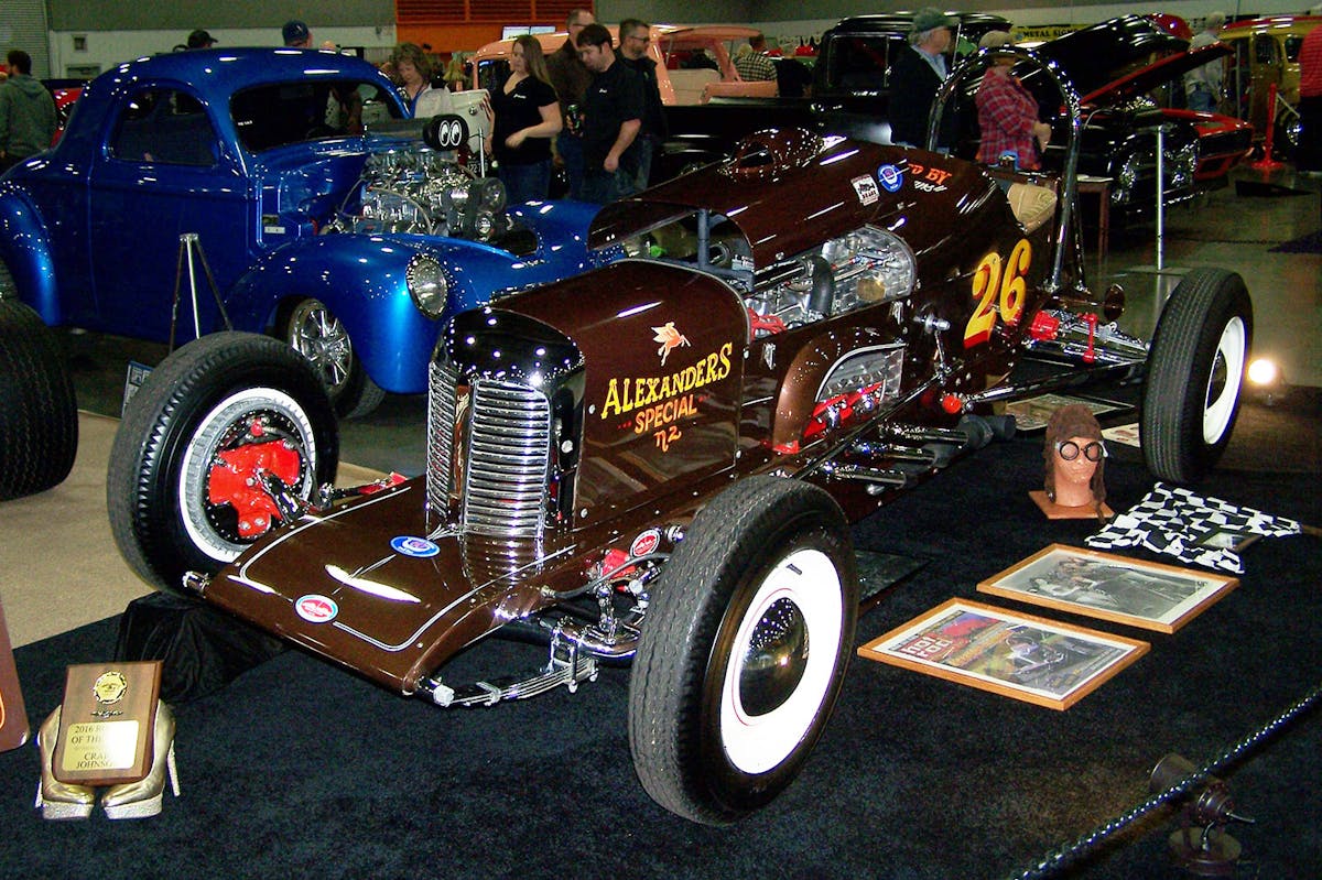 Stanwood, Washington’s Craig Johnson’s No. 26 ‘30s Miller-Ford racer sits on a ’28 Chevy frame with a 284ci flathead, three-speed tranny, and a Winters quick change rearend. Having competed in Australia, New Zealand, and the U.S., it currently runs with the Golden Wheels Fraternity.