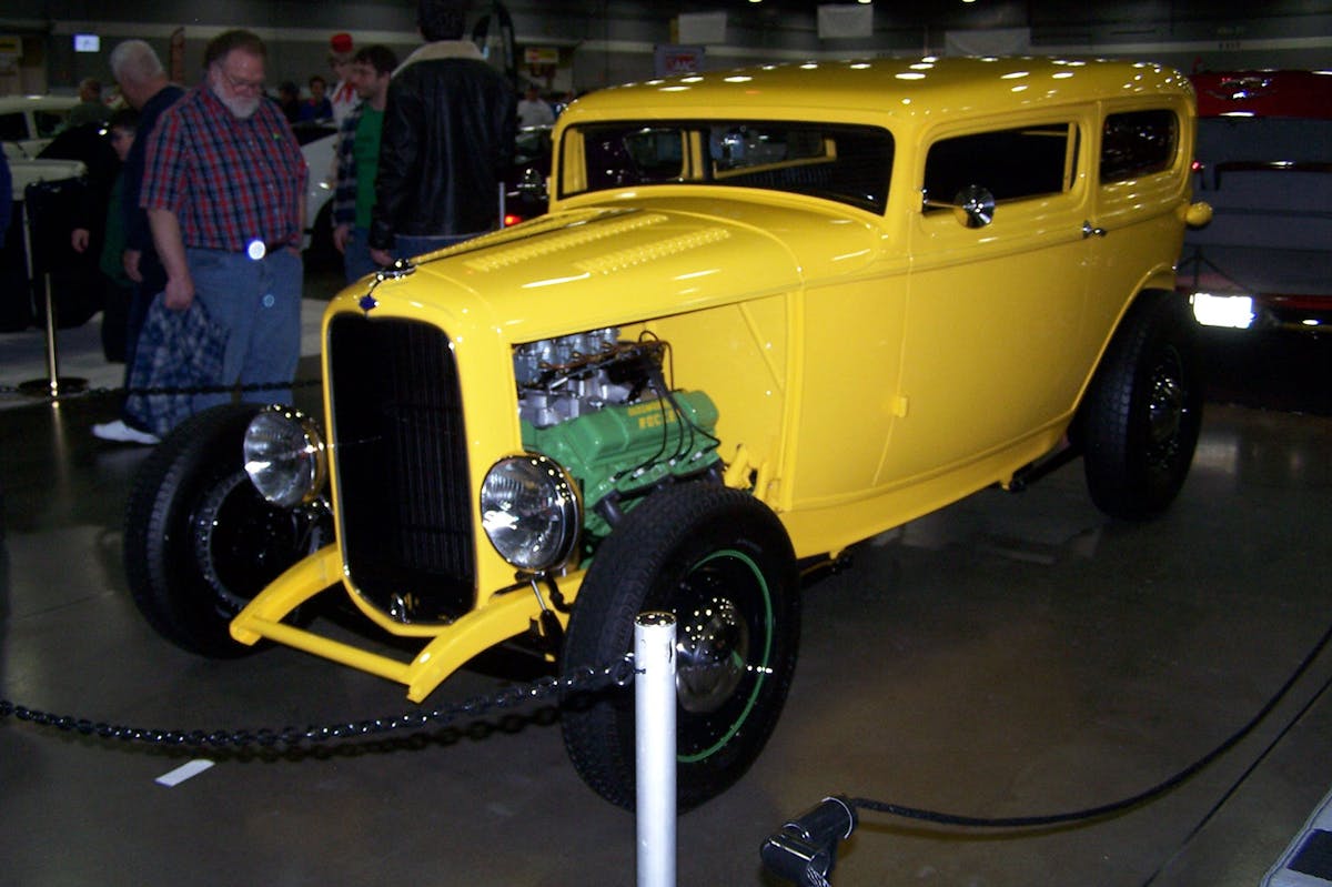 This sedan was Barris Kustom’s modified in 1958, with a 5-inch chop, ’56 Olds Rocket 88 engine with a Hydramatic, it also lost its fenders at that time. Dave Schroeder’s ’32 changed hands several times during the next 50 years, before another Olds engine and Hydramatic tranny were found and used in the restoration. The car was officially shown for the first time at this event.