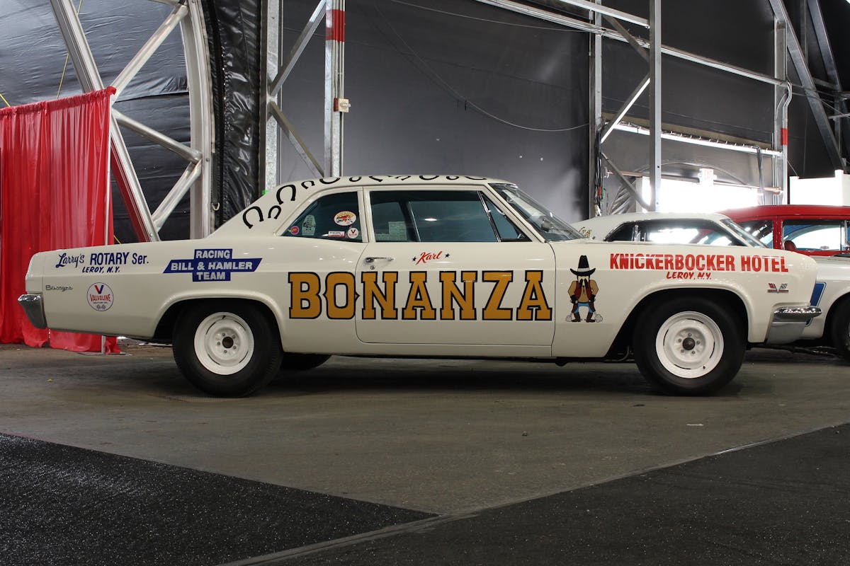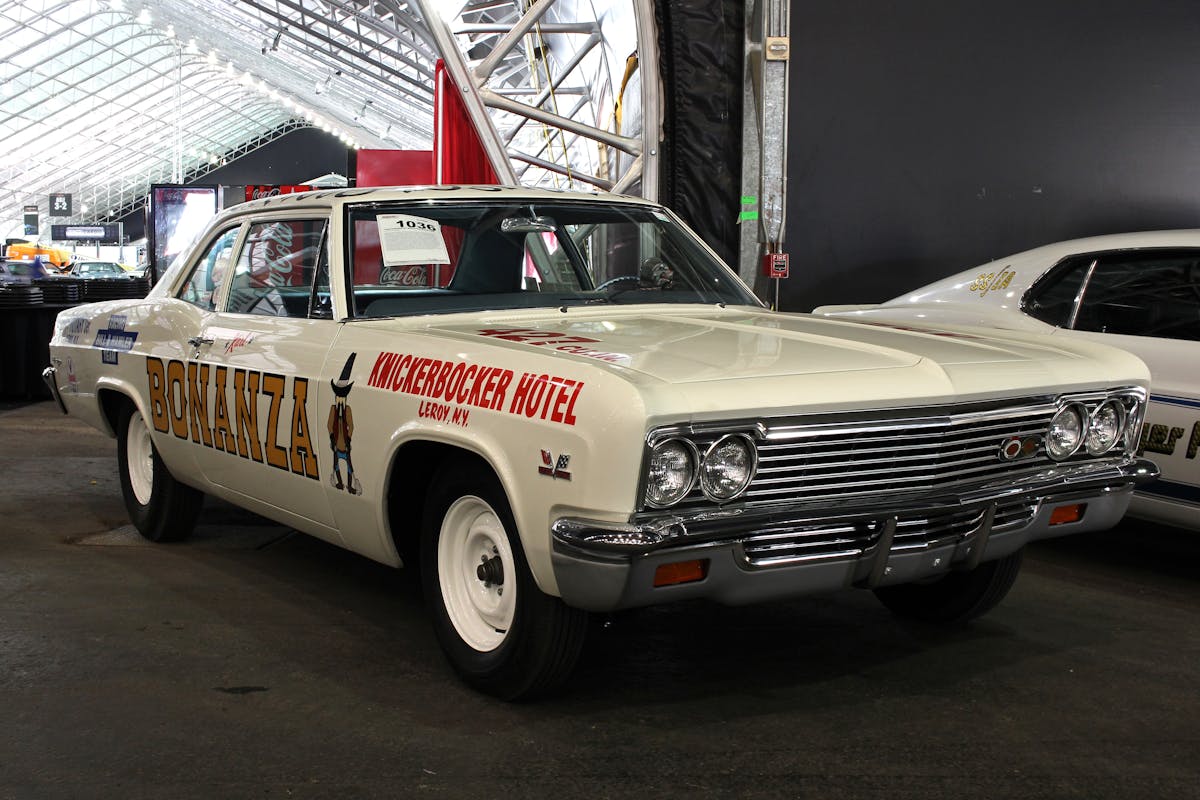 This 1966 Chevy Biscayne named “Bonanza” caught my attention because, well, race cars are cool, and old-school race cars are even cooler. This particular vehicle was ordered by Karl Bill, the service manager at Leroy Motors in Leroy, New York specifically so he could become a drag-racer.