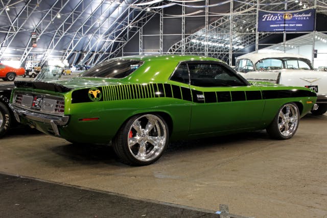 Original is cool, but let’s face it, I am a gearhead, and gearheads modify things. It’s in our DNA. So it will be pretty obvious why this pro touring-style 1970 ‘Cuda jumped out at us. The stance, the Hemisphere Lime Pearl paint, and the 20-inch Mr. Norm’s Trust wheels add a modern touch to a truly iconic muscle car.