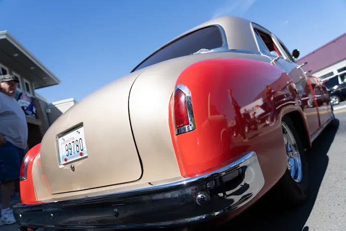 The two-tone paint draws you in, but the classic hotrod drivetrain and custom interior keep you looking! This ’50 Dodge Meadowbrook belongs to Fred Robbins of Port Orchard, Washington, and he bought it from his neighbor, the original owner’s daughter, two-decades ago. “I’ve had the car for 20-years,” Fred explained. “It was in the garage for 10-years and it’s been on the road for 10 years.”