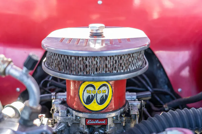 “It was forest green and the body had a few rust spots,” Fred continued. “The motor was the original flat-head.” He got it running, but it smoked really bad so he decided to upgrade the drivetrain a little bit.
