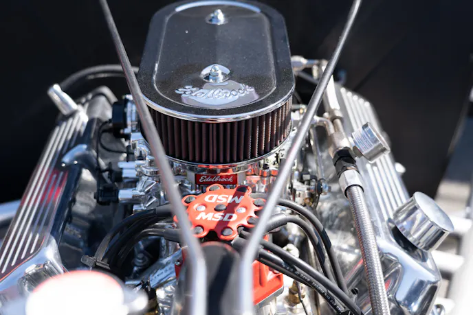 Fuel is supplied by an Edelbrock 650 CFM Carburetor and Vintage Air A/C keeps the cab cool!