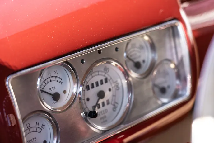 The base of the bed is a beautiful tigerwood that really finishes the look of the build, and the instruments are direct from Ford Motorsports. This beauty is really all Ford and it’s cool to see a build totally dedicated to the blue oval pride. Part of what makes the hobby so cool is that there are builds of all types where people use a motors, transmissions, and bodies from all makes, and there are builds like this that stay true to a single brand. We love it.