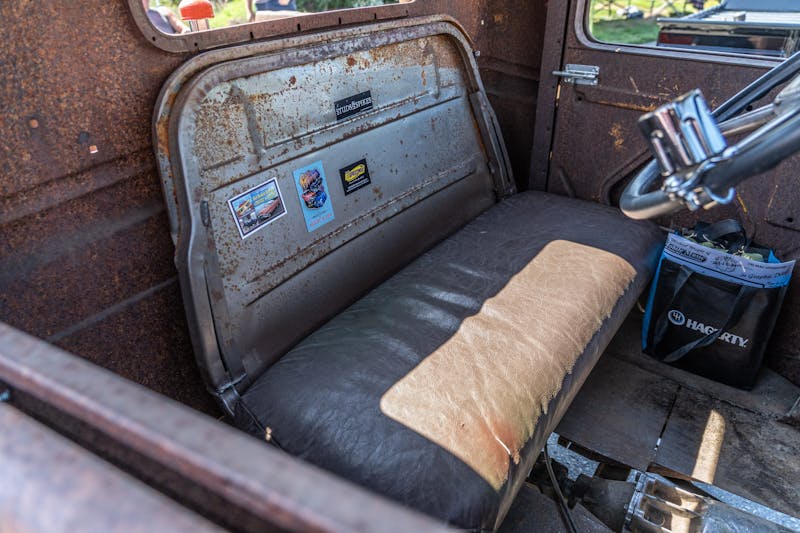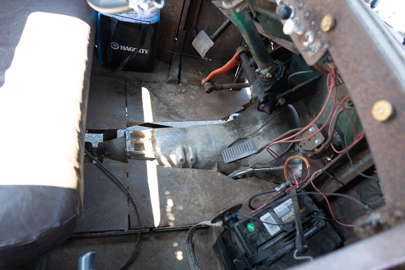 “It was forest green and the body had a few rust spots,” Fred continued. “The motor was the original flat-head.” He got it running, but it smoked really bad so he decided to upgrade the drivetrain a little bit.