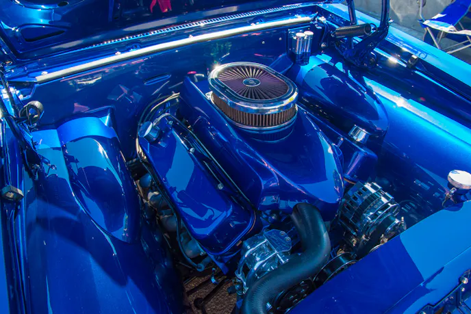 This car immediately caught our eye as we were walking around the event. It’s green paint and slightly different proportions made it stand out. We got closer, saw the gleaming chrome under the hood, and knew we were going to have to find out more.