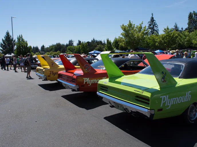 Mopars are well known in the automotive world for their unique color palette. If you see some purple or green muscle while out driving, odds are good it’s a Dodge or a Plymouth. The Plum Crazy Purples, Sassy Grass Greens, and Hemi Orange colors were everywhere; and we couldn’t be happier about it. Not only were those cars dressed up on the outside, the engines were done up to match.