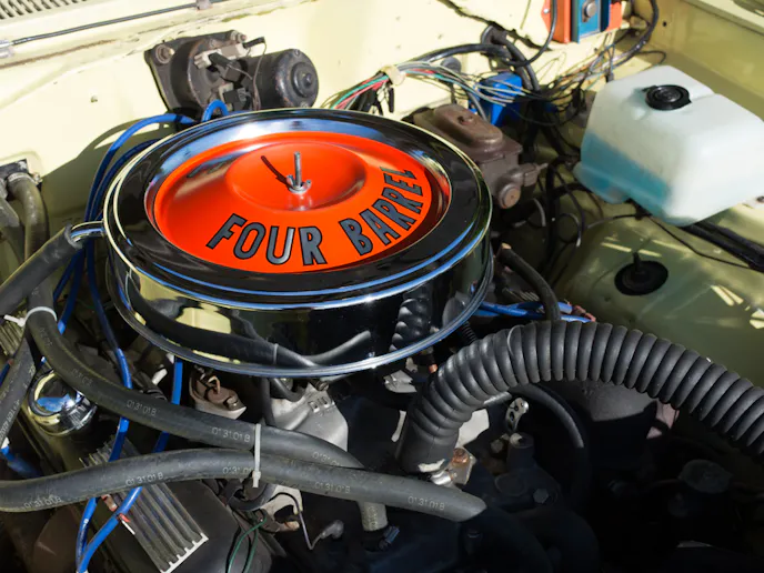 It’s powered by a 383 cubic-inch Magnum engine with a 440 crank, roller rockers, and aluminum heads followed up by a 727 Automatic transmission. The engine is dressed up to look totally stock, but has actually been totally reworked.