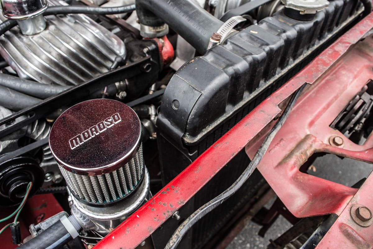 This car was turned into a hotrod pretty much from new and it was originally a green car. It was painted orange once, then orange again over the previous two coats of paint. An early owner also installed some older aftermarket equipment on the car like a Holley carburetor, headers, Edelbrock intake, and some sort of home-made Nascar style breather. “The muscle cars like this got used and beat up,” Jack said. “We used to joke that mismatched front fenders were an option since so many of these cars often had different colored fenders.”