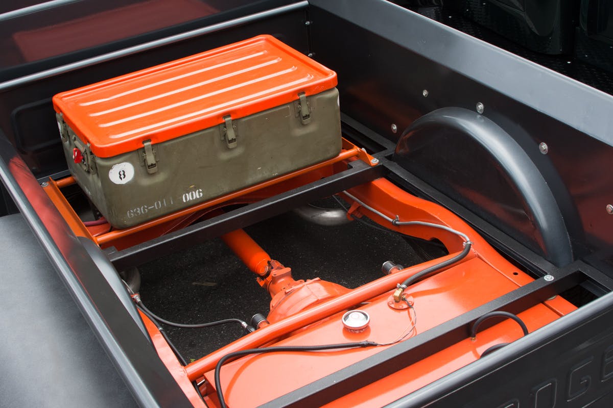 The paint scheme is a little unusual too and that’s part of what caught our attention with this one. The body, the hood, and the grille are all painted and finished, but the fenders and the running boards are primed and have guide coat over them—and it looks really good. We’ve never seen guide coat actually used as a finishing touch, and the texture really adds to the build and works well with the orange accents. “My kids are going to have it someday,” Kevin explained. “So they can repaint it if they want.” Kevin is happy with the way that it looks now.