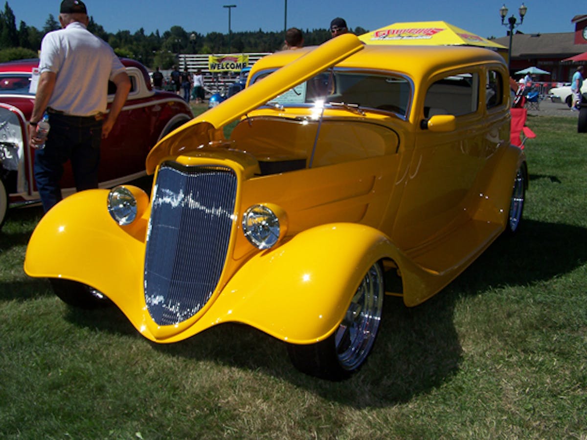 Tacoma’s Jr. Nelson put a 392 Hemi and 727 Torqueflite in his ’29 Roadster, thus earning its flames.Imagine cruising from Langley, British Columbia, in an open ’47 Ford, with a 350/350 powertrain. That is exactly what owners Rob and Bev Mallett did.Doug, a Canadian from Cloverdale, owns this canary yellow ’32 that is powered by a potent 354 Hemi with a 700R tranny and quick change rearend.Sidney, British Columbia’s Stan Coppen brought his flamed ’32 three-window coupe that runs a 355 SBC with a Muncie four-speed.Centralia, Washington’s Greg Miller’s 1951 Ford Country Squire has a 5.0 -liter Ford, Fat Man front clip, Armando’s interior, Billet Specialties wheels, Rick Mack woodwork and Midnight Green mica paint.British Columbia’s Eric Adams’ aqua ’52 Ford F-1 is Chevy powered.Doug and Stacy’s ’50 Plymouth Suburban rides on air, runs a 350/350, and hails from Bremerton, Washington.Barry Profarer of Penticton, BC, told us the kegs in his LT-1 powered ’29 Ford Sedan Delivery have to be “dry” when he crosses the U.S. border since he gets checked every time.Tacoma, Washington’s Don Natucci’s ’38 “mellow yellow” 1938 Chevy belies the 454 BBC and 350 Turbo- hydramatic resting in an Art Morrison chassis.Pincher Creek, Alberta, Canada is home to Brad Neish and his ’37 Ford, with a 383 stroker and 700R.Lynn Cole’s ’46 Ford Woodie from Boring, Oregon, has a 302 under hood, backed by a five-speed tranny.Dave and Dawn Brown didn’t give us much, but their ’37 Chevy four-door and matching trailer was enough.Frankie ‘Z’ Zawislak of Puyallup brought his ’32 three-window coupe as another fine local entry.You haven’t lived until you’ve seen a hot rodded ’34 Terraplane. We spotted Doug Grove’s, with ZZ4 power and a 700R4, from Olympia, Washington.Black Diamond, Washington’s Fred Weston didn’t say much about his yellow ’39 Chevy coupe, but we liked it just the same.Kerrie Gherna’s ’47 Plymouth four-door Sedan out of Bremerton, Washington, runs a 350 Chevy/350 Turbo transmission, and looks as though you can take the entire block for a ride.You don’t get much brighter than Jim Hummel’s yellow ’29 Ford Tudor sedan. This was home-built in Woodinville, Washington with a 350/350 powertrain.What’s neat about North Plains, Oregon’s Rick May’s ’59 Impala? Maybe that he’s owned it for 54 years, or that it was customized in 1959! We don’t know if the 348 with 315 HP has been rebuilt, but the AirRide upgrade is more recent.Jerry and Nancy Pague of Cle Elum, Washington, displayed their LS1-powered Deuce roadster with a Coddington chassis and salmon metallic finish.Langley, BC’s Phil Jensen entered his full fendered, blue ’28 Ford Model A pickup, and we’re glad he did.Gold metalflake on Brent McLellan’s Surrey, British Columbia-based ’31 Model A sedan is nostalgic not only in the paint. It runs from the grille, through three 2-barrels, finned valve covers, and chrome reverse wheels, to the Firestone wide whitewall tires, high temp paint on the exhaust, and finally through the white steering wheel.Travis Fox’s all Ford ’33 Vicky has a 302 with Inglese induction, and a chassis stretched 3-inches, stepped 3-inches, 2.-inches in front. Lifting the body 2-inches and lengthening it another 3-inches, with a 2 ¾-inch top chop that was performed before shooting it with Ditzler Chrome Yellow. Mike Curtis wheels with Jim Taylor knockoffs, and rubber by Nitto finish it.If keeping it all Chevy is your thing, you’ll like the ’38 Coupe of Ridgefield, Washington’s Dale and Terri Ahrens, with its 350 SBC/350 Turbo. Look for a feature on this wine-colored cruiser.The heat got us thinking how cool it would be to take Ron Place’s Troutdale, Oregon-based ’56 Chevy wagon to the beach. Two-tone paint, 350/400, and vintage surf stickers that told us the roof rack wasn’t for show.Whether Stubbs’ delivery & service exists or not, Tacoma, Washington’s Gary and Karen Stubbs’ ’54 Chevy panel was assembled when “What You Want is a Coke” was the slogan, as good an idea today in the heat as it was back then.Vancouver, Washington’s Scott Petersen’s ‘37 is all Chevy, and black-on-black for that murdered-out sinister look.Hoquiam, Washington’s Don and Irene Richardson’s ’38 Ford convertible sedan, features PPG paint, a Ron Mangus interior, Kicker sounds, Wheel Vintiques wheels with Firestone hubcaps, IFS and IRS, and a 350 Ram Jet.Craig Ross of Langley, British Columbia, drove his ’32 roadster across the border with its 8BA flathead with three-speed tranny working to perfection.