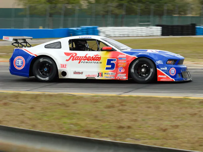 As the field circulated behind the pace car, race fans around the 3.740 mile Sebring International Raceway waved and saluted the drivers as they passed by. When the green flag was displayed Ruman’s beautiful red Corvette lead the field into turn one. Ruman, Lopez, and Doug Peterson, all piloting Corvettes, separated themselves from the rest of the field. TA2 saw Tony Buffomante, starting from the second position outside of pole-sitting Cameron Lawrence, power ahead at the start to take an early lead. After review, officials determined Buffomante had jumped the start and issued the #34 Bestline Lubricants Ford Mustang a drive-through penalty, ending his chances of finishing up front.