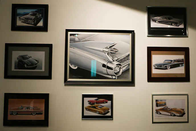 Stanford meddles in just about every aspect of automotive design and artwork. For years he spent time pinstriping and drawing out his favorite cars and combinations of cars. Tailfins, Cadillacs, and customs are tops on his list. Legendary automotive designer Harley Earl is a personal hero to Stanford and rightly so. The father of the automotive tailfin and Corvette can have that effect on any respectable artist. Harley Earl’s family considered it a huge honor to ask Steve to create a tribute piece in Earl’s name. To which, of course, Stanford immediately and enthusiastically agreed to.