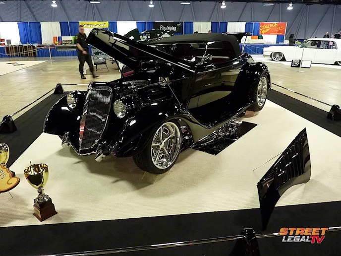 Up next is Dale Fode’s black, all-steel “1934.5″ Ford Roadster. Designed by Mark Willis and Bob Stewart over at Mark Willis Custom Painting, this pitch black ’34 was devastating in person. Dig the blown LS7, 4L60, Kugel suspension, and foot deep R-M paint. From the rake of the windshield to the smoothed and tucked rear bumper, the mods were subtle but added up to greatness. The custom wheels by Hulst were a cross between old school Halibrands and 1968 Ford T-Bird “mag” hubcaps and were the perfect finishing touch. WON BIG with Sam Barris Memorial Award, Dick Bertolucci Automotive Excellence Award, Steve’s Auto Restorations Mark of Excellence Award, 2015 Best Rod. Wow.