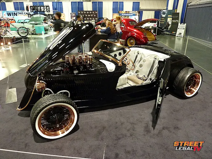 Last but not least, we really loved Greg Clouse’s “Steampunk.” Designed by Chris Miranda at West Coast Auto Craft it took a long time to soak up all the fantastic details, materials and execution. From the 510ci Ford motor with custom stack injection to the copper accents on the wheels and body, it’ll make you reconsider that nothing new can be done on a Ford roadster canvas.