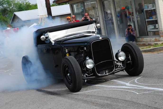 Kirby and Richard gave this gathering the name “Hullabaloo” because they didn’t want it to be a car show. They don’t really give out trophies, they just want people to come out and have a great time. This is a laid back time to just hang out with friends, talk about hot rods and listen to some good music. Here’s something new; it doesn’t cost a thing to bring your car. Just roll down Dillehay Street and find a place to park. If you happen to go too far down the road; burn-outs are expected.