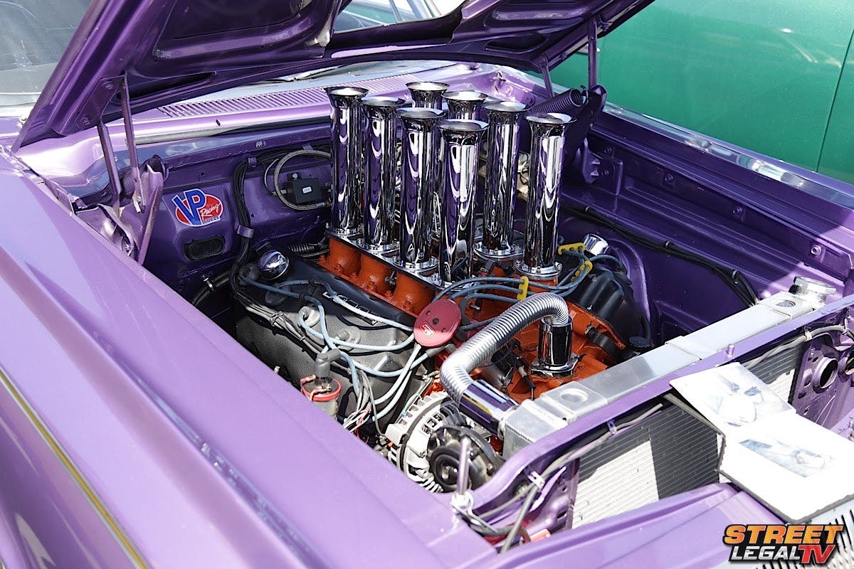 Owned by Jerry Keller, this second-generation Dodge Polara caught our eyes from the shiny stack sitting under the hood. The hefty 426 cubic-inch V8 motor looks very capable and the inside of the Polara told us even more.