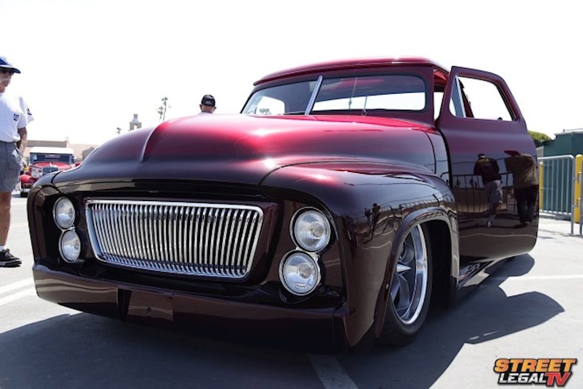 Not in any specific order, let’s go over our top picks from the Del Mar Nationals. Passing by the vendor booths, we couldn’t help but stop to feast our eyes on this custom truck. Nicknamed “The Punisher,” this tricked out 1954 Ford F-100 lives up to its name.