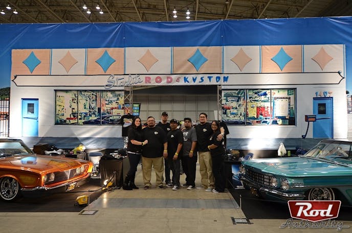 Every year the show has a theme and this year’s was, “Mild and Wild Customs of the 60s.” Mr. Suganuma wanted to provide a couple fine examples of 1960s styled customs so he invited Edgar Hernandez and Jack Fields of Starlite Rod and Kustom from Torrance, California. He requested that they bring their two famous cars–Jack’s ‘60 Ford Starliner aka “Agent Orange” and Starlite fabricator, Erik Hernandez’s ‘60 Oldsmobile Dynamic 88 dubbed “Electric Lemonade.” Edgar, Jack, and Erik are members of The Autoholics Car Club.