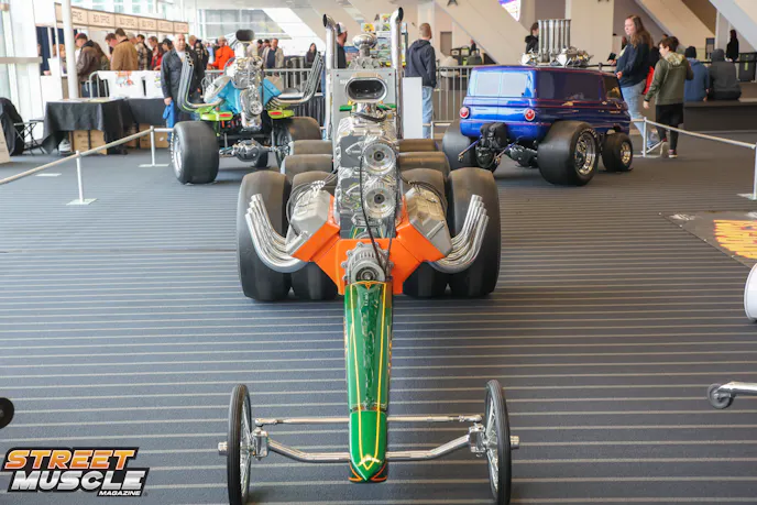 Winning the Ridler Award is a big deal, and when you take a look at Rick and Patty Bird’s 1931 Chevrolet Independence coupe you can see why it was bestowed with the trophy. The first thing you notice is all of the exposed turbo plumbing that connects the 72mm turbos to the 509 cubic-inch big block Chevy engine. Bird spent a lot of time massaging the Chevy’s body to create a unique look that’s covered in a mixture of PPG Vibrance Wineberry and Orange Glow paint. The Sho Bird is outfitted with enough chrome to make any truck driver jealous.
