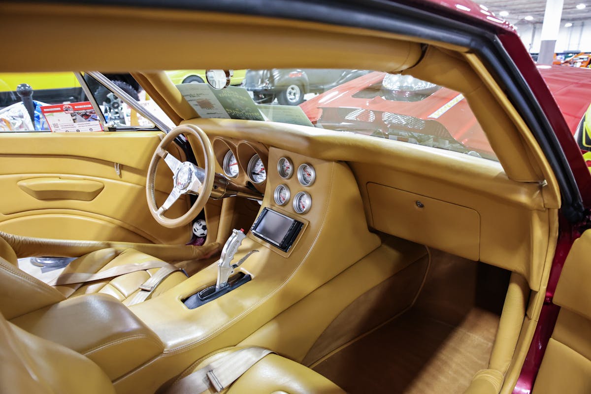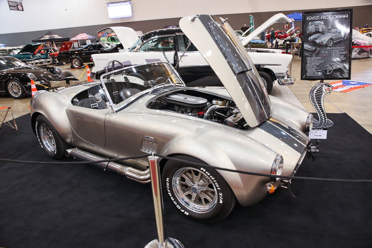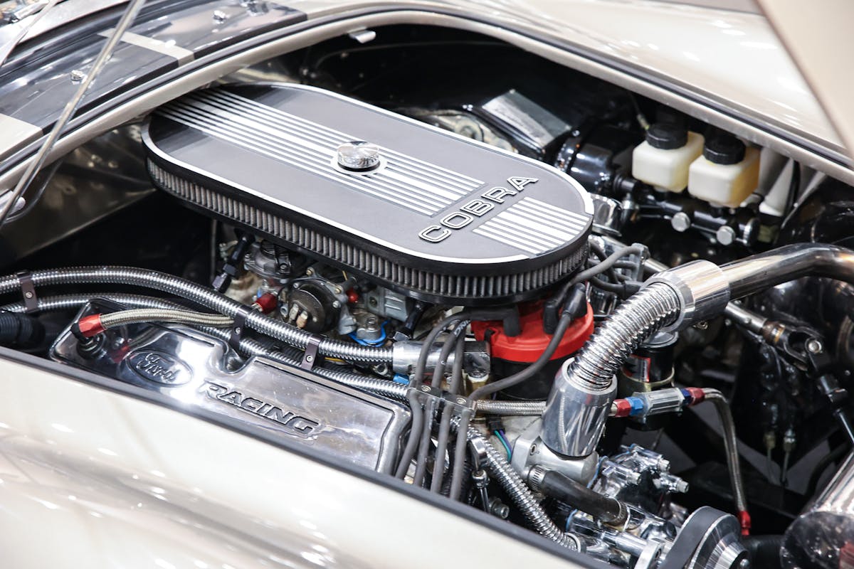 Backdraft Racing built an amazing 1965 AC Cobra replica for Marty and Cindy Sester. This snake takes what the AC Cobra was to a new level. Under the flip-up hood, you’ll find a Ford Racing 351 Windsor crate engine that’s been matched to a TREMEC five-speed transmission. A BMW M3 sport front and rear independent suspension was added to the Cobra to help it hug the curves. Marty and Cindy ride in style thanks to the comfortable leather interior inside the Cobra’s cockpit.