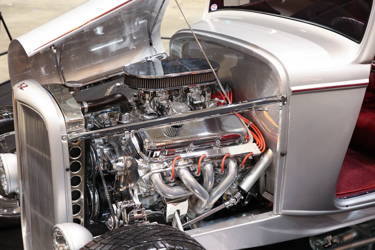 There’s no wrong way to build a 1932 Ford. Ron Dawson’s 3-window coupe has been stretched six inches and painted a slick shade of Mercedes Silver. The custom frame was built by Bobby Alloway, and is home to a 496 cubic-inch Chevy mill that’s backed by a TH350 transmission. The Billet Specialties wheels are home to a set of Wilwood brakes. Inside the Ford, you’ll find a custom lipstick red custom interior.