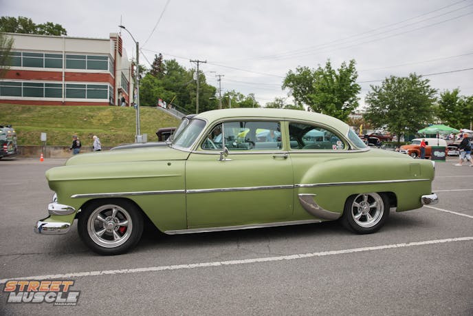 Jeff Millikan’s 1954 Plymouth Savoy is a unique build that caught our attention in Knoxville thanks to the Axalta Custom paint sprayed by Funkytown Customs. Under the hood, you’ll find a 6.4-liter Gen III HEMI that’s backed by a six-speed transmission. The Savoy rolls on a custom tube chassis that was built by Millikan Motorsports. Kirk’s Kustom Upholstery took care of the interior that features power and heated seats. Millikan also added a custom HVAC system thanks to Vintage Air.